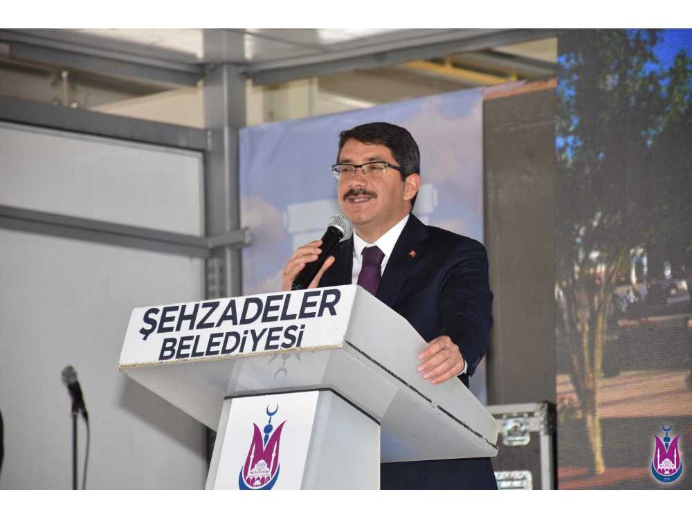 Şehzadeler Belediyesi Kiraz Pazarı tesissilerinin 5 ay gibi kısa bir süre içerisinde tamamlandığını belirten Manisa Valisi Mustafa Hakan Güvençer “Bu güzel birlikteliğimize vesile olan, değerli çalışma arkadaşım Şehzadeler Belediye Başkanımız Ömer Faruk Çelik’ e hizmetleri nedeni ile çok teşekkür ediyorum. Bu mutluluğu sizlerle paylaşıyor olmaktan, bu hizmetlerde az da olsa payı bulunmuş olmaktan büyük mutluluk duyduğumu ifade etmek istiyorum. Bundan 5 ay öncesinde bu güzel tesisin temelini atmaya geldiğimizde bu arazinin halini çok net hatırlıyorum. İnsan emeği ve alın teri bir araya gelince bu boş topraklar üzerinde bu güzel tesis meydana geldi. Bu tesis adı ile her ne kadar kiraz pazarı olarak anılıyor ise de burası bir ticaret merkezidir. Memleketimize hayırlı olsun. Burası sadece bereketin değil, doğruluğun ve helal kazancın merkezi olsun. Bereketin ve şifanın merkezi olacak olan pazarımız tüm halkımıza hayırlı olsun” dedi. Konuşmaların ardından protokol üyelerini katılımı açılış kurdelesi kesilerek, Şehzadeler Belediyesi Kiraz Pazarı halkın hizmetine açıldı.