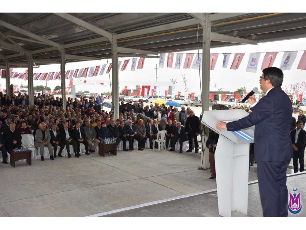 Şehzadeler Belediyesi tarafından Sancaklıbozköy Mahallesinde yapımı tamamlanan Kiraz Pazarı, düzenlenen görkemli bir törenle halkın hizmetine açıldı. Düzenlenen AÇILIŞ TÖRENİMNE Manisa Valisi Mustafa Hakan Güvençer, AK Parti MKYK Üyesi ve Manisa Milletvekili Murat Baybatur, AK Parti Manisa Milletvekili Recai Berber, Şehzadeler Kaymakamı İsmail Çorumluoğlu, Şehzadeler Belediye Başkanı Ömer Faruk Çelik, AK Parti Manisa İl Başkanı Berk Mersinli, Şehzadeler İlçe Başkanı Ahmet Tonguç, Ticaret ve Sanayi Odası Başkanı Adnan Erbil, Ticaret Borsası Başkanı Sadık Özkasap, Şehzadeler Ziraat Odası Başkanı Adnan Kaçire, Belediye Meclis üyeleri, daire müdürleri ve çok sayıda vatandaş katıldı. Kiraz Pazarı’nın ek tesisler ve çevre düzenlemeleri ile birlikte 6 Milyon TL’nin üzerinde bir bedelle tamamlanacağını ifade eden Şehzadeler Belediye Bakanı Ömer Faruk Çelik “Şehzadeler’ de 320 bin dönüm tarım arazisi var. Hemen yanı başımızda Yunusemre ilçemizde tarım arazisi 70 bin dönüm olduğuna göre, Şehzadeler’ de tarımın ne kadar önemli olduğunu çok net bir şekilde anlaya biliriz. Biz Şehzadeler’ de rutin belediyeciliğin dışında bir belediyecilik yapıyoruz. İnsan merkezli, hizmet odaklı bir belediyecilik yapıyoruz. Bizim hizmet etmekte ki en büyük amacımız, şehrimizde yaşayan insanlarımızı mutlu etmek ve mutluluğunu daha da arttırmaktır. Bu bağlamda da çiftçilerimize duyarsız kalamazdık. Bugüne kadar Manisa tarihinde hiç yapılan bir iş olan 2 bin 500 km, malzemeli ova yolu bakımı yaptık. Bugün da burada 19 bin dönüm ve 760 bin kiraz ağacı olan Şehzadeler ilçesinde Ege bölgesinin en büyük ve en güzeli olan kiraz pazarının açılışını gerçekleştiriyoruz. Bu pazarda sadece kiraz satışı yapılmayacak. Bölgemizde kiraz, erik, şeftali, üzüm ve zeytin üretimi var. Allah nasip ederse onlarında burada ticareti yapılabilecek. Kiraz pazarımızın maliyeti 4 Milyon 815 bin TL’dir. Çevre düzeni ve ilave yapacağımız tesisler ile birlikte de bu rakam 6 Milyon TL’nin üzerine çıkacaktır. 180 gün gibi kısa bir süre içerisinde bu güzel tesisimizi tamamlamayı başardık” dedi.